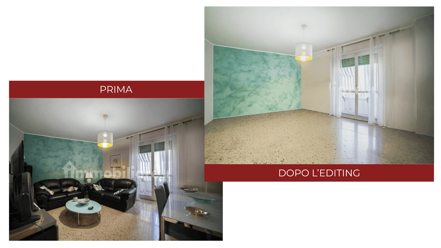 In questa seconda fase andiamo a ripulire tutto il materiale grafico da ogni elemento di disturbo alla vendita come vecchi mobili ed oggetti personali in caso di unità immobiliari abitate al momento della messa in vendita, oppure attrezzi e macchinari da lavoro in caso di cantieri in corso d'opera.