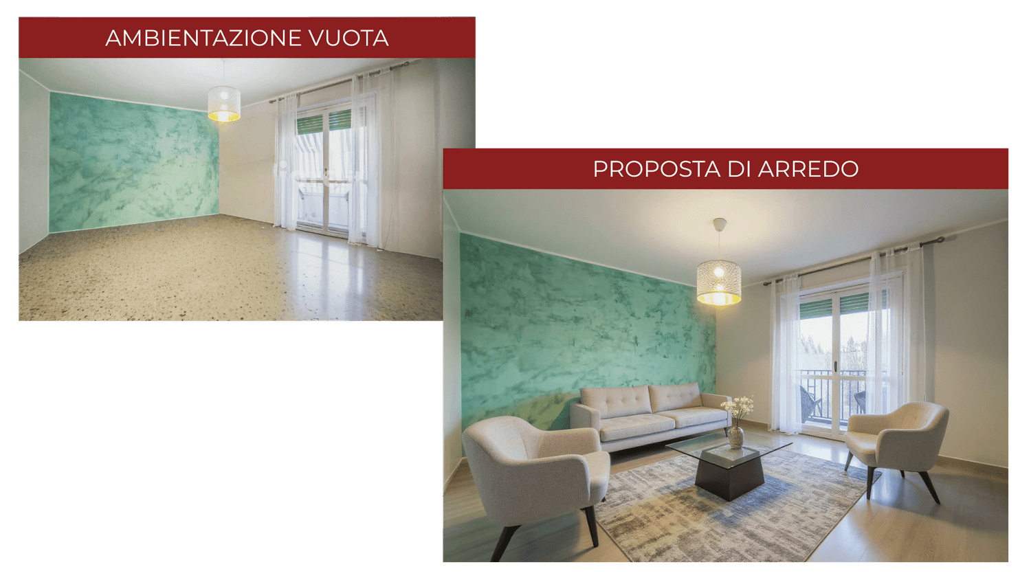 Partendo dagli spazi vuoti e finiti della fase di editing segue un accurato studio di progettazione d'interni per rendere l'immobile dal "come è ora" al "come potrebbe essere" una volta completato. I render iper realistici di questa fase permetteranno al cliente finale di immergersi nella sua nuova abitazione senza sforzare l'immaginazione.