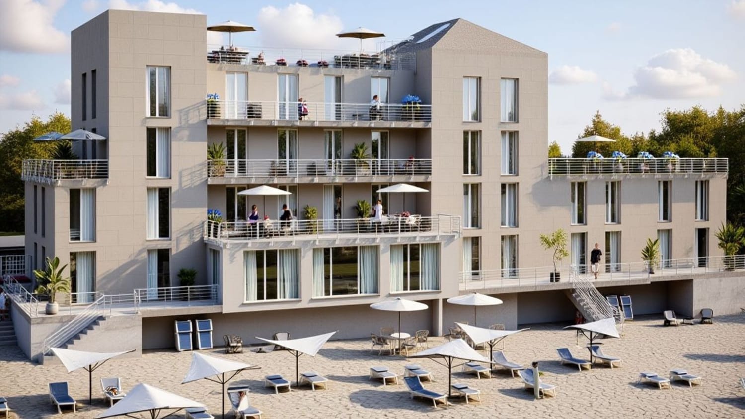 Andremo a selezionare dai nostri cataloghi di fornitori di design contemporaneo arredi e complementi che realizzino davvero il progetto idealizzato dai render. In questo modo si potrà offrire al cliente finale l'opzione di scegliere un'abitazione chiavi in mano completa di ogni dettaglio e dallo stile elegante e moderno con l'ulteriore vantaggio economico dovuto al risparmio dei normali costi che un privato avrebbe per la progettazione, gli arredi e per il trasloco.