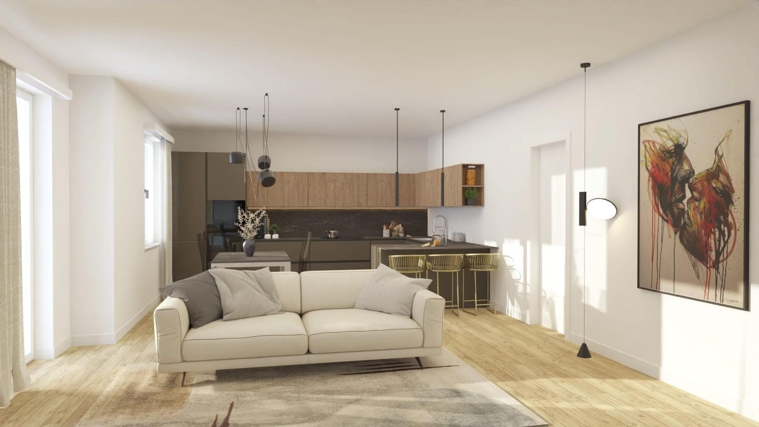 Partendo dagli spazi vuoti e finiti della fase di editing segue un accurato studio di progettazione d'interni per rendere l'immobile dal "come è ora" al "come potrebbe essere" una volta completato. I render iper realistici di questa fase permetteranno al cliente finale di immergersi nella sua nuova abitazione senza sforzare l'immaginazione.